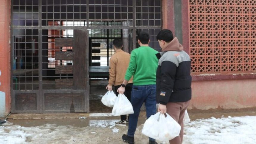 Ciwanan li koçberên di wan dibistanan de xurek, betanî, nivîn, derman û pêdiviyên zarokan belav kirin, ku zehmetiyên koçberiya bi salan sivik bikin.
