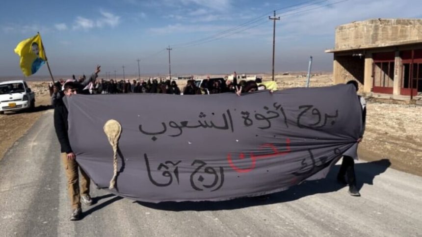 Bi pêşengiya Însiyatîfa Ciwanên Ereb, gelê herêma Ereb a Şengalê bi dirûşmeya ‘Bi ruhê xwişk-biratiya gelan, em bi berxwedana Rojava re ne’ meşeke girseyî li dar xist.