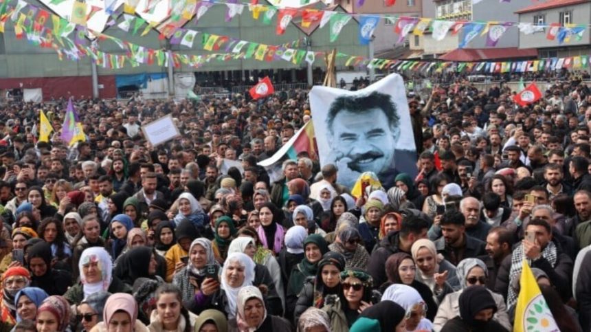 Ciwanan li qada Newrozê û li ser dikê posterên mezin ên Rêber Apo û Salih Muslim hildan. Her wiha wêneyên Rahşan Demîrel, Sema Yuce û Kemal Kurkut jî hatine hildan. Stranbêj Devrîm Çelîk û Aylîn Demîrkaya derketin ser dikê û strîn û gel li ber stranan wan govend gerand.