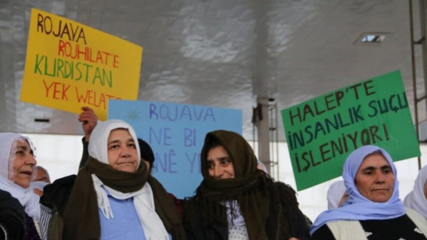 Adalet Çay got: “Ji bo ku şer bisekine em diçin Enqereyê. Me her tim aştî û azadî xwest. Kurd bi girtin û kuştinê naqedin. Her derê Kurdistanê xira kirin. Em wek dayik dixwazin azadî û aştî were. Divê her kes wehşeta ku li Helebê diqewime bibîne.”