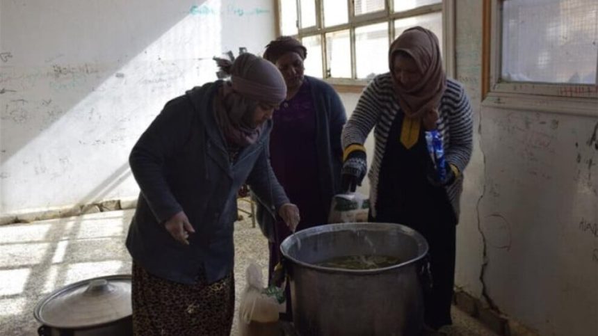 Li bajarê Til Temir ê girêdayî Kantona Cizîrê dayîk û hevjînên şehîdan, ji bo şervanên ku li eniya şer parastina bajêr dikin, xwarinê amade dikin.