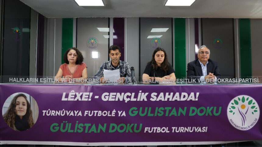 Meclisa Ciwanan a Partiya Wekhevî û Demokrasiyê ya Gelan (DEM Partî) di navenda partiyê de derbarê Turnuvaya Futbolê ya Gulistan Dokuyê daxuyaniya çapemeniyê da. Kurdiya daxuyaniyê endamê Lijneya Rêveber a Meclisa Ciwanan a DEM Partiyê Oguzhan Ozbay tirkiya wê jî berdevka Meclisa Ciwanan Edanur Îbrahîmoglû xwend.