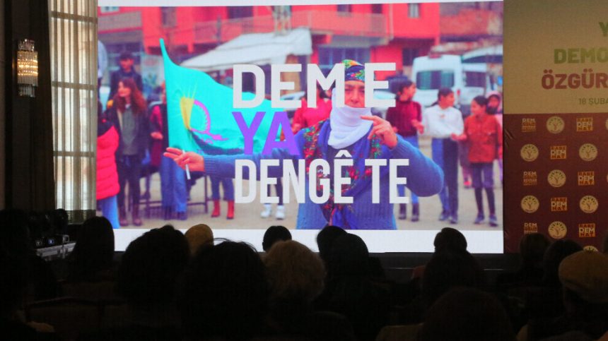 Partiya Wekhevî û Demokrasiyê ya Gelan (DEM Partî) li hotêleke Enqereyê danezana jinan a hilbijartina rêveberiyên herêmî ku dê di 31’ê adarê de bê lidarxistin eşkere kir. Li gel namzetên hevşaredariyê, gelek kes tev li bernameyê bûn. Jin, bi cil û bergên kurdî tev li bûn. Li eywana çalakiyê di serî de bi kurdî, bi gelek zimanên din afîş hatin daliqandin. Di afîşan de bal kişandin ser tecrîda li ser Rêberê Gelê Kurd Abdullah Ocalan.
