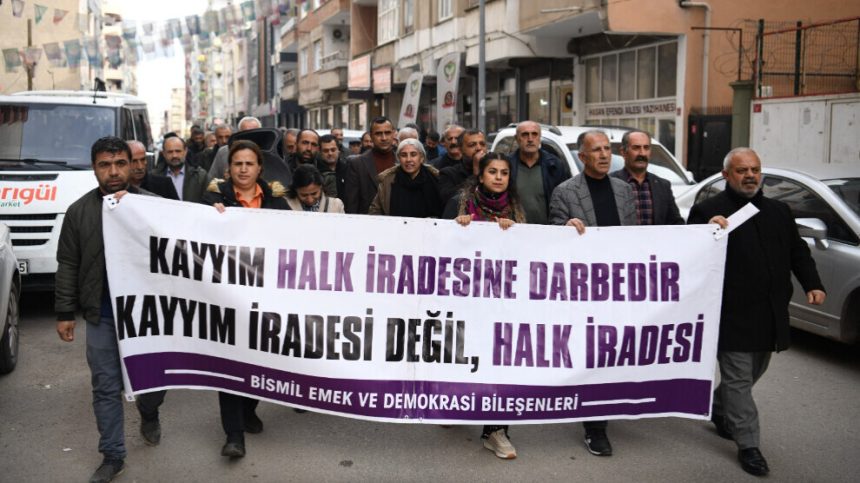 Li navçeya Bismilê ya Amedê gel li ber avahiya Partiya Herêmên Demokratîk (DBP) a navçeyê li hev civiyan û pankarta “Qeyûm derbeya li vîna gel e. Ne vîna qeyûman, vîna gel” ber bi navenda navçeyê ve meşiyan. Di meşê de dirûşmên “Bijî berxwedana Wanê” û “Qeyûm talan e, bijî berxwedana gelê Kurd” hatin berzkirin. Gelê derdorê jî bi nîşaneya serketinê piştgirî dan çalakiyê.