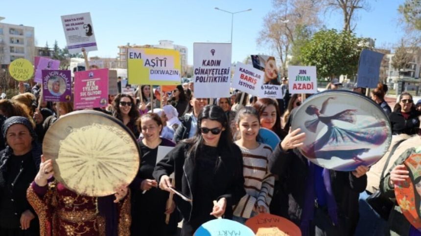 MÛŞ: Li Mûşê jin bi dirûşmên “Jin, Jiyan, Azadî”, “Bijî berxwedana jinan” û “Bijî têkoşîna jinan” meşiyan. Parlamentera DEM Partiyê ya Mûşê Sumeyye Boz li çalakiyê axivî û bal kişand ser rola pêşeng a jinan a pêvajoya aştiyê. Çalakî bi gerandina govendê bi dawî bû.