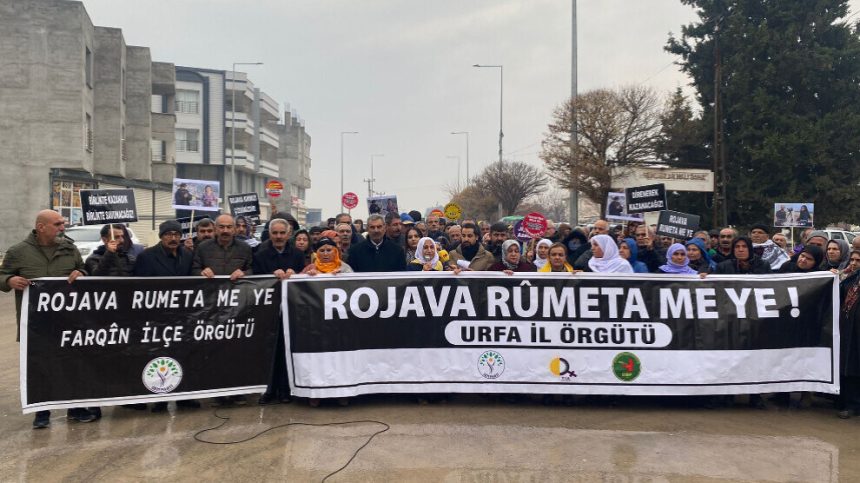 Di çalakiyê de pankarta “Rojava rûmeta me ye”, wêneyên rojnamevan Nazim Daştan û Cîhan Bîlgîn ên ji hêla dewleta Tirk ve bi SÎHA’yan hatin qetilkirin û dovîzên “Rojava xeta me ya sor e” hatin hilgirtin û daxuyanî hate dayin.