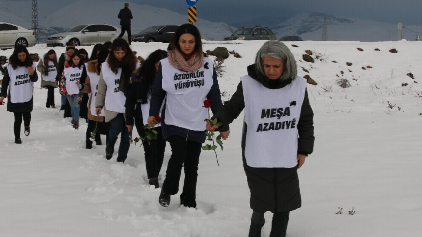 Meşvanên jin ên çûn cihê ku cenazeyê Ekîn Wan lê hat definkirin deqeyek rêz girtin. Parlamentera Partiya DEM Partiyê Newroz Uysal li vir axivî û got, “Piştî pêvajoya çareseriyê dewleta Tirk bi pêkanînên dijmirovî li hemû bajarên Kurdistanê sûcê şer kir. Gimgim di mejiyê me de weke nîşandana cenazeyê Ekîn Wan hatiye xemilandin. Em dizanin ku peyama ku di şexsê wê de êrîşî bedena jinê dikin, peyamek ji bo gelê Kurd û jinan e. Cenazeyê Ekîn Wan bû bedena hemû jinên ji bo azadiya xwe li ber xwe didin. Li hemû bajarên Kurdistanê ev kirin berdewam kirin. Berê xwe dan gelê me û jinên ku ji bo azadiya xwe li ber xwe didin, lê jinan berxwedana xwe berdewam kirin. Her komkujiyek li ser jinê di heman demê de li paradîgmaya jinê ya Birêz Ocalan tê kirin. Di vê meşê de em bi rastiya ku azadiya Birêz Ocalan azadiya jinê ye tevdigerin. Ekîn Wan bi rêzdarî bibîr tînim.