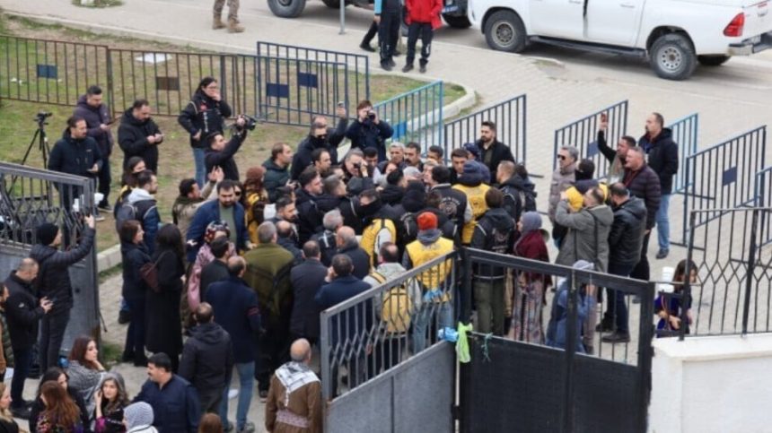 Polîsên ku serê sibehê nehiştin xebatkarên çapemeniyê derbasî qadê bibin, hewl dan ser siyasetmedarên li qadê lêgerînê bikin. Vê hewldanê rê li ber rageşiyê vekir.
