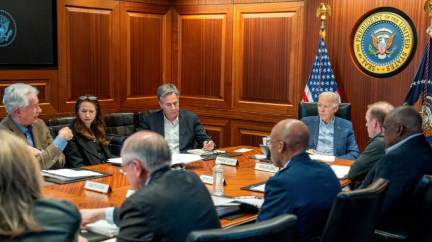 Serokê DYE’yê Joe Biden roja Duşemê tîma xwe ya ewlekariya neteweyî li navenda krîzê ya li Qesra Spî li Situation Roomê li hev kom kir û bûyerên têkildarî aloziya li vê herêmê nirxand.