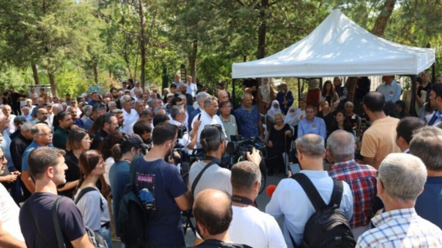 Hevserokê Giştî yê DEM Partiyê Tûncer Bakirhan di merasîma cenazeyê de axivî û bal kişand ser têkoşîna Tarik Ziya Ekîncî ya ji bo gelê Kurd.