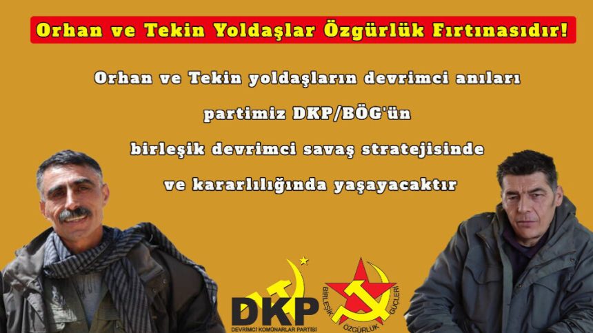Partiya me DKP/BOG di şexsê hevrê Orhan û Tekîn de, giraniya hemû şehadetan hildigire û teqez wê hesab bipirse. Bîranînên şoreşgeriyê yên hevrê Orhan û Tekîn wê di biryardarî û stratejiya şerê şoreşa yekbûyî ya DKP/BOG’ê de bijîn. Tola hevrêyan wê bi têkoşîna şoreşa yekbûyî ya şoreşgerên Kurdistan û Tirkiyeyê, were hilanîn û serketin wê diyarî gelên Kurdistan û Tirkiyeyê were kirin.”