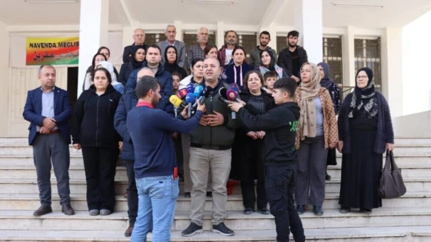 Kombenda Efrîn a Civakî, Meclisa Koçberên Efrîn û Şehbayê û nûnertiya civaka sivîl a Ewropayê li pêşiya avahiya Meclisa Koçberên Efrîn û Şehbayê ya li bajarê Qamişlo derbarê vegera bi ewle ya koçberên Efrînê de daxuyaniyek da.