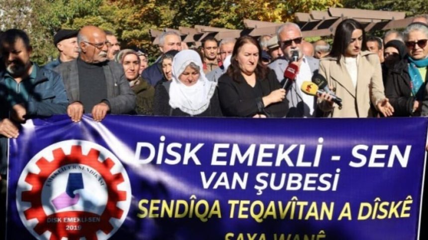 Şaxa DÎSK Emekli Sen a Wanê têkildarî Rojîn Kabaîş li Parka Ahmedê Xanî ya Wanê daxuyaniya çapemeniyê da. Rêxistinên girseya demokratîk û nûnerên partiyan tevlî daxuyaniyê bûn.