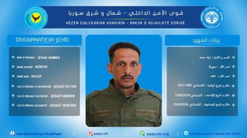 Cih û dîroka şehadetê: Şedad; 19-6-2024.”