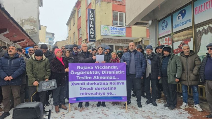 Rêxistina DEM Partiyê ya Depê, li ber avahiya partiyê êriş şermezar kir. Di daxuyaniya ku tê de pankarta “Rojava wijdan e, azadî ye, berxwedan e, nayê teslîmgirtin” hate hilgirtin de, Hevseroka DEM Partiyê ya Depê Sema Atalan axivî. Sema Atalanê destnîşan kir ku bi çekên giran hedefgirtina qadên sivîl, li dijî gelên Kurd, Elewî û Ereb “hewlekê eşkere ya tunekirinê ye.”