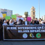 Piştî daxuyaniya çapemeniyê dirûşmên “Jin, Jiyan, azadî” û “Bijî berxwedana Rojava” hatin berzkirin.