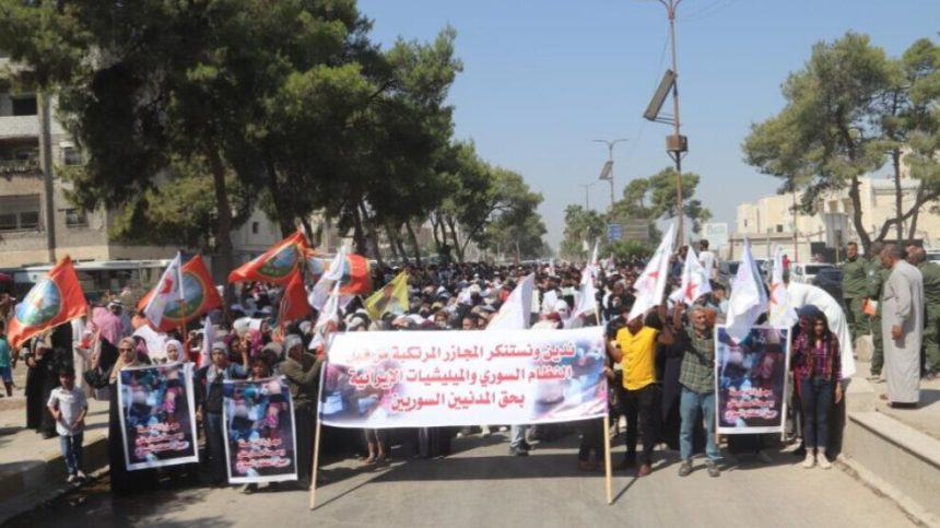 Rûspiyên êlên Ereb û giregirên Til Hemîsê li ber avahiya Parlamenta bajêr hatin cem hev û komkujiya li Dêrazorê şermezar kirin.
