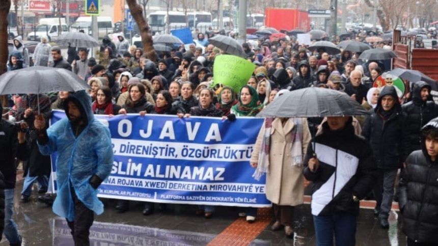 Daxuyanî, bi dirûşmên “Bijî berxwedana Rojava” û “Rojava xeta me ya sor e” bi dawî bû.