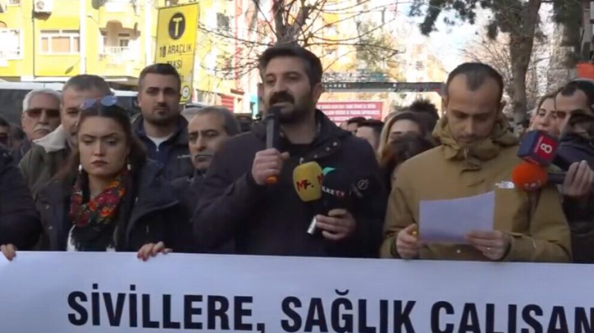 Endamên her du platforman li ber AZC Plaza ya li navçeya Yenîşehîr, hatin ba hev. Pankarta “Êrîşên li dijî sivîlan, xebatkarên tenduristiyê û ambûlansan, sûcê mirovahiyê ye” hate vekirin.