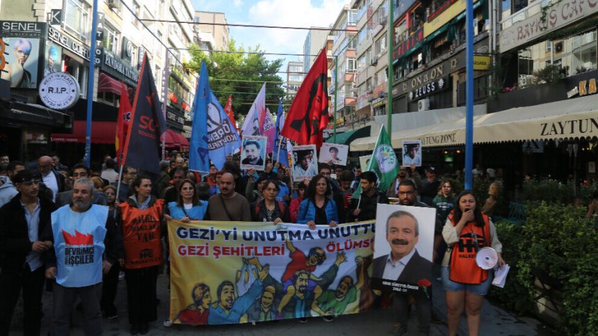 Di meşê de wêneyê Endamê Şandeya Îmraliyê ya DEM Partiyê û Serokwekîlê Meclîsê Sirri Sureyya Onder hatin hildan. Girseya gel benda polîsan a ku dixwestin pêşiya meşê bigrin şikand û xwe gihandin Guvenparkê. Girseyê li vir daxuyanî da.