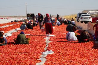 Jinên ku di bin germa rojê de karê hişkkirina firingiyan dikin bi gotina; ‘’Her tişt ji bo kirîna…