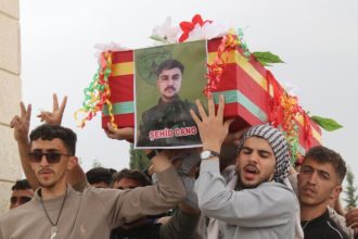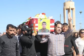 Cenazeyê şervanê QSD'ê Goran Amûdê yê 3'yê Cotmehê di êrîşa balafira bêmirov a dewleta Tirk a dagirker de…
