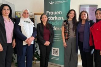 Şandeya Jinan a Bakur û Rojhilatê Sûriyeyê li paytexta Elmanya Berlînê binûnerên Women For Women International (Rêxistina Navneteweyî…