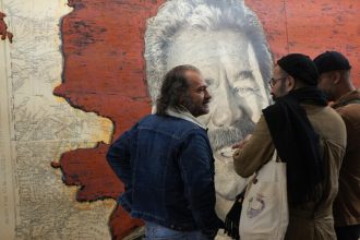 Portreya mezin a Rêberê Gelê Kurd Abdullah Ocalan ku wênevan Alî Zulfîkar navê 'Qîrîna Azadiyê' lê kiriye, li…