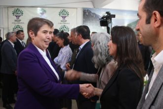 Hevserokê Giştî yê DBP’ê Keskîn Bayindir û Hevseroka Giştî ya DEM Partî Tulay Hatimogullari li Colemêrgê di protestoyên…