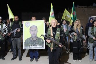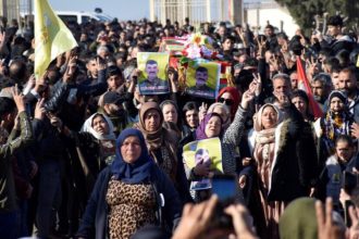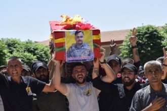 Cenazeyê şervanê QSD’ê şehîd Botan Serêkaniyê (Mihemed Ehmed) bi tevlîbûna sedan kesan li Dirbêsiyê hat veşartin.