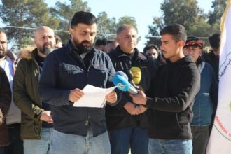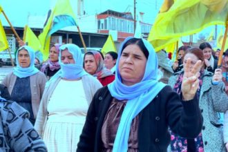 Li bajarê Silêmaniyê yê Başûrê Kurdistanê, gel li dijî êrîşên komkujiyê yên Hikûmeta Veguhêz a Sûriyeyê ku li…
