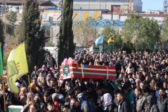Cenazeyê şevanê Hêzên Komando yên QSD'ê şehîd Orhan Kobanê li Kobanê bi merasîmekê li Şehîdgeha Şehîd Dîcle hate…