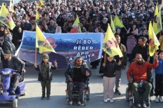 Xelkê Hesekê û koçberên ji Efrîn û Serêkaniyê ji bo azadiya fîzîkî ya Rêber Apo meşiyan.