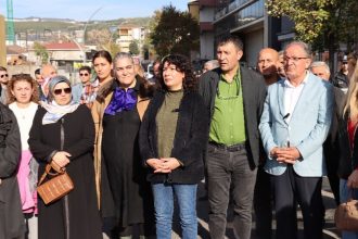 Berdevka Meclîsa Jinan a DEM Partiyê Halîde Turkoglu, ligel meclîsa jinan û rêxistina bajêr , li ber kargeha…
