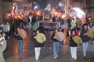 Bi sedan ciwanên taxên Şêxmeqsûd û Eşrefiyê yên Helebê ji bo azadiya fîzîkî ya Rêber Apo, meşiyan.