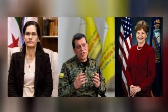 Hevseroka Daîreya Têkiliyên Derve ya Rêveberiya Xweser a Bakur û Rojhilatê Sûriyeyê Îlham Ehmed û Fermandarê Giştî yê…