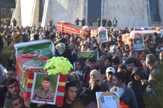 Bi hezaran kes ji şêniyên kantona Firatê bi merasîmeke girseyî cangoriyên xwe li goristana Şehîd Dîcle ya Kobanê…