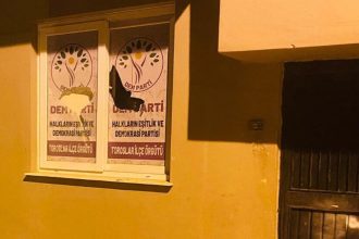 Li navçeya Toroslar a Mersînê, bi keviran êrîş birin ser avahiya DEM Partiyê.