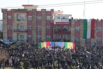 Li Ranyayê mamoste û xwendekarên ku ji bo piştgiriya Rojava daketin qadan dirûşmeya “Yek Niştiman û Yek Netew”…