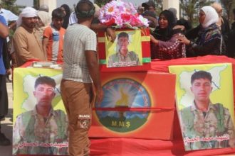 Cenazeyê şervanê Hêzên Komandos ên QSD’ê Elî Mihemed Ehmed ku 1’ê Tîrmehê li Eyn Îsayê li ser erka…