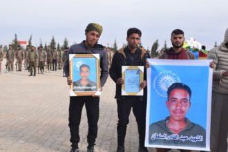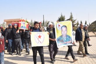 Meclîsa Malbatên Şehîdan a Şedadê ya Kantona Cizîrê ji bo veşartina cenazeyê endamê Hêzên Ewlekariya Hundirîn Fadî Ehmed…