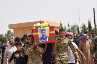 Cenazeyê Endamê Hêzên Xweparastinê Ehmed Qati El Kerdûş ku li Kantona Cizîrê di encama girtina kehrebeyê de şehîd…