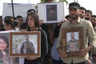 Cenazeyê şervanên HRE’yê Cûdî Gabar û Cûdî Reşo yên di çalakiya Basilê de şehîd bibûn, li Goristana Şehîdên…
