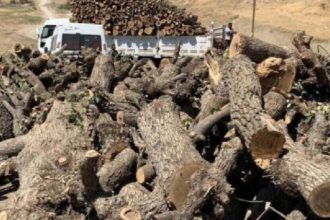 Li herêma Çiyayê Gabarê kontra di bin çavdêriya leşkerên Tirk ên dagirker de daristanan dibirin.