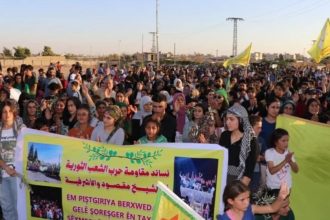 Xelkê kantona Tebqayê û kesên ku ji Efrîn û Şehbayê koçber bûne, ji bo piştgiriya Hêzên Sûriyeya Demokratîk…