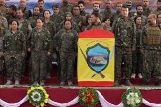 Cenazeyê Şervanê QSD’ê Mistefa Efrîn (Xalid Mihemed) ê ku 27’ê Sibatê di êrîşa dewleta Tirk de şehîd bû,…