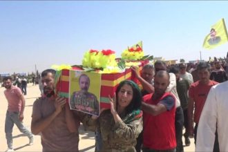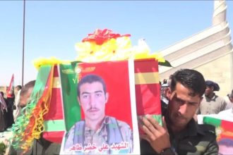 Cenazeyê şervanê Yekîneyên Berxwedana Şengalê (YBŞ) Demhat Ereb (Elî Xidir Tahir) ku 2’yê Tebaxê di encama qezayekê de…