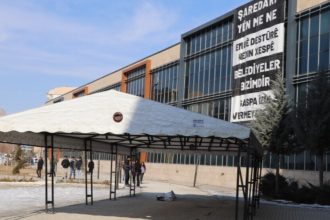 Xelkê Wanê ji bo pêşî li xespa qeyûm bigire, li ber şaredariyê konê berxwedanê veda.