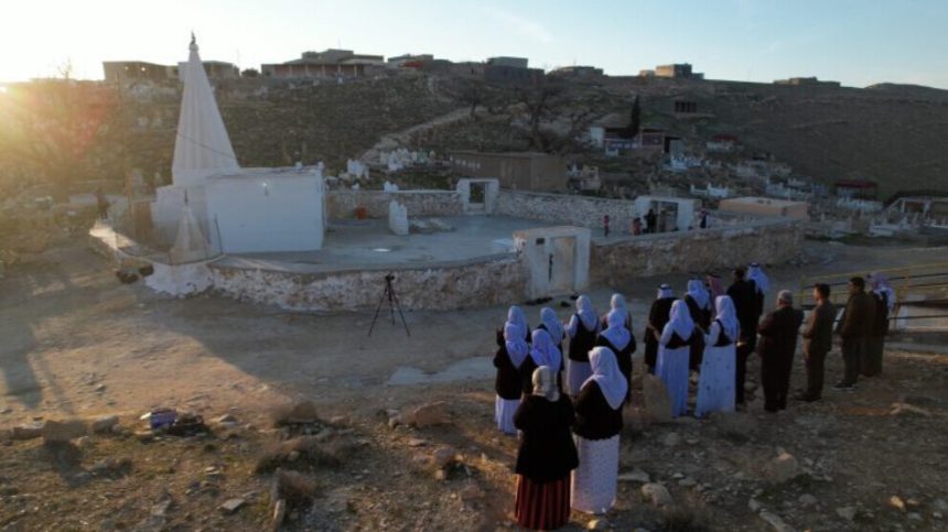 Vê carê oldar, serokeşîr, rûspiyên Êzidiyan tevî dayîkan, endamên TAJÊ û Rêveberiya Xweser a Şengalê miraza di dilê wande ku azadiya Rêber Ocalane, bi hêviya pêkanîna vê mirazê berê xwe dan ber Mezargeha Şêbilqasim û bi hêviya azadiya Rêber Ocalan berê xwe dan rojê, destê xwe bilindkirin û hêviya xwe bi awayeke komî anîn ziman.
