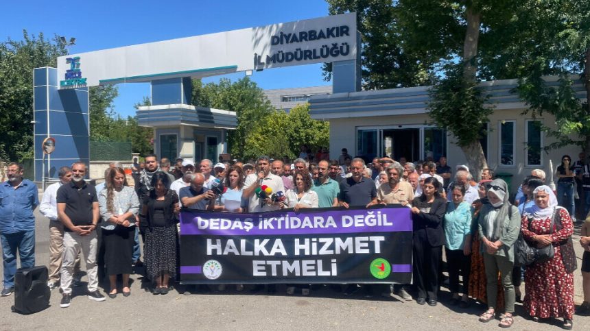 Rêveberên DEM Partiyê û DBP’ê û gelek kes beşdarî daxuyaniyê bûn û pankarta “Divê DEDAŞ ne ji bo desthilatdariyê ji bo xelkê xizmet bike” vekirin.